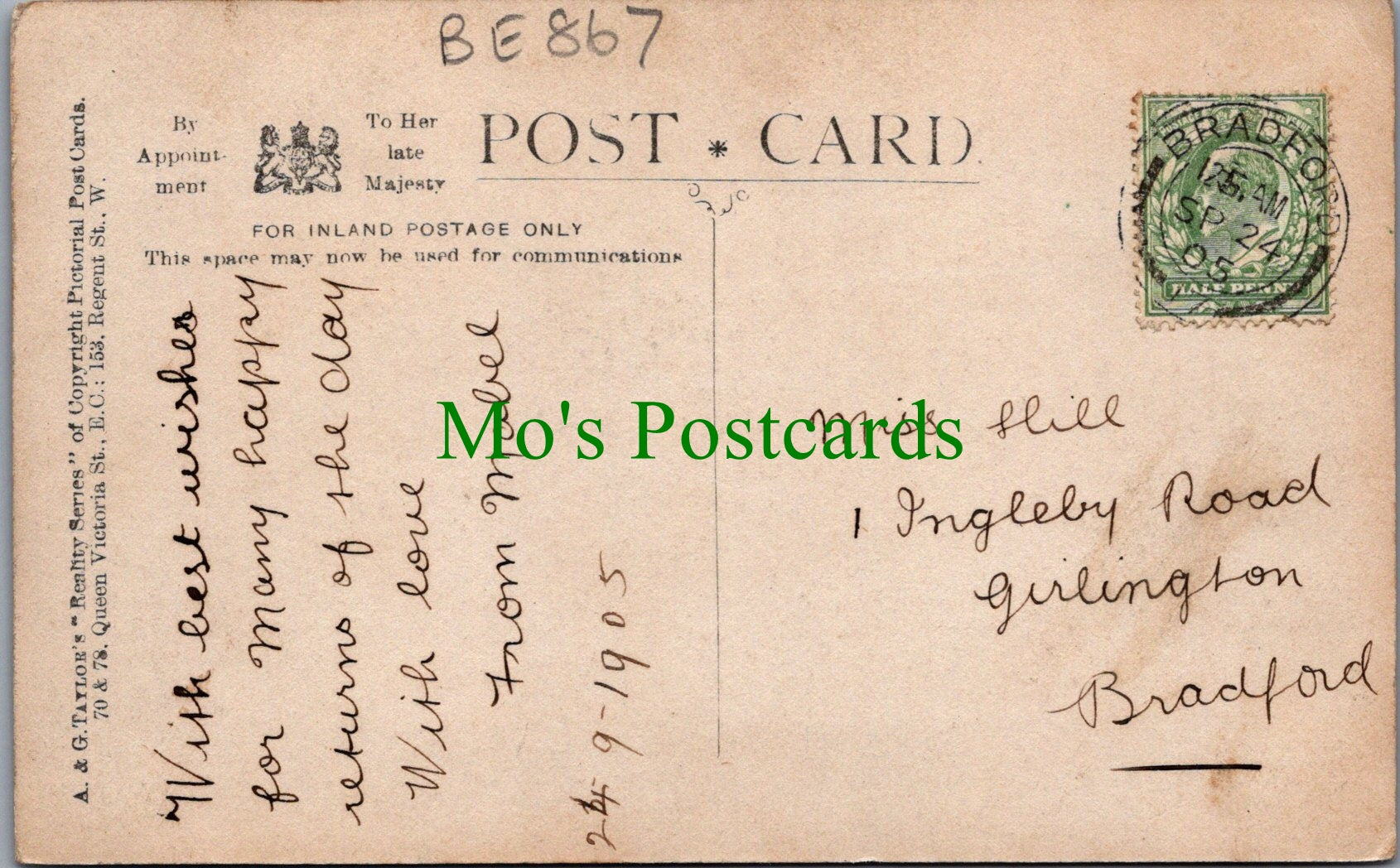 All of our postcards are posted to you inside a plastic sleeve and a board backed envelope which will be marked 'Please do not bend'. The 'Mo's Postcards' watermark does not appear on the actual postcard'.