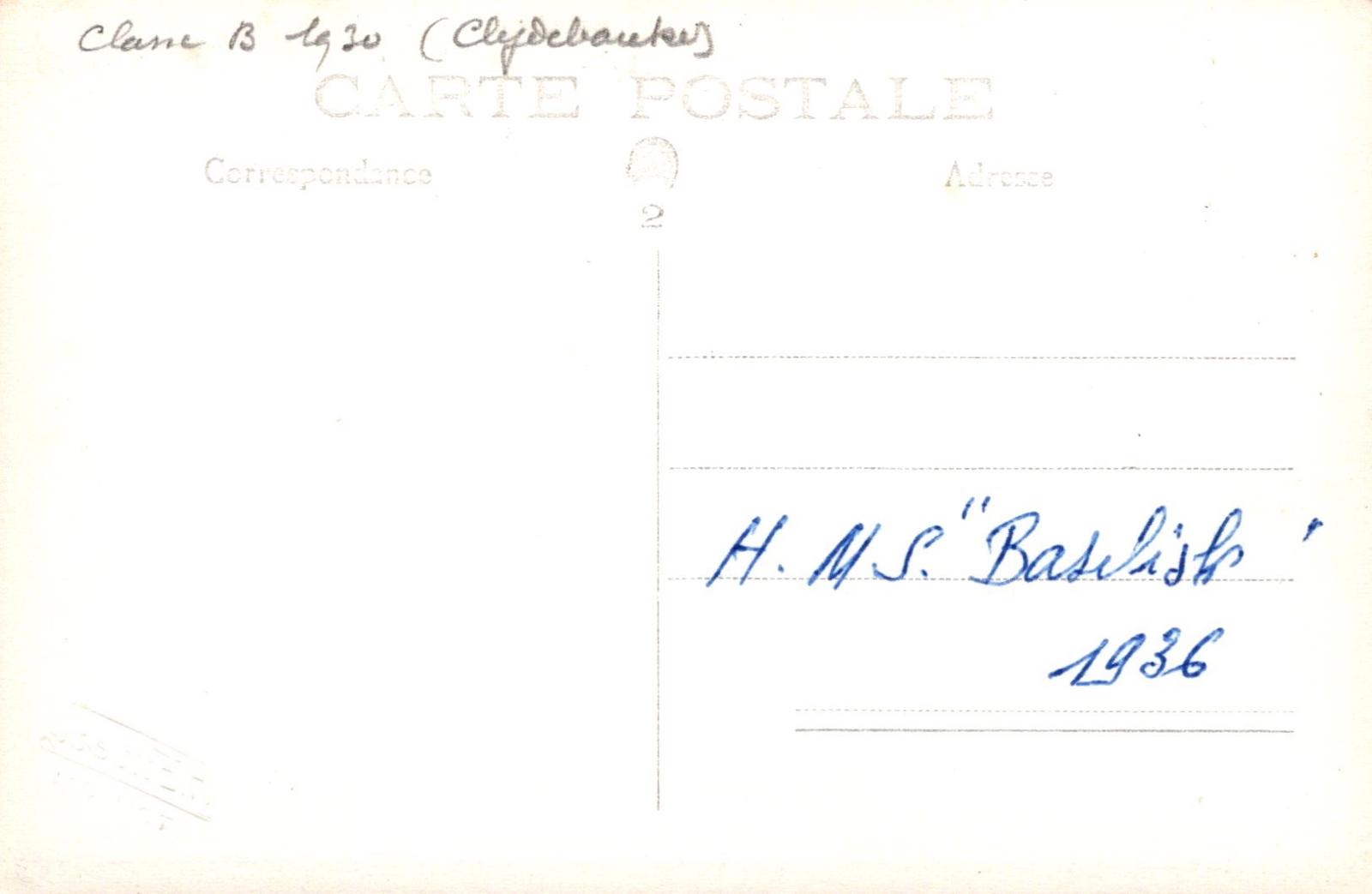 This is a Naval History Postcard - H.M.S. Basilisk, 1936, B-Class Destroyer XT65