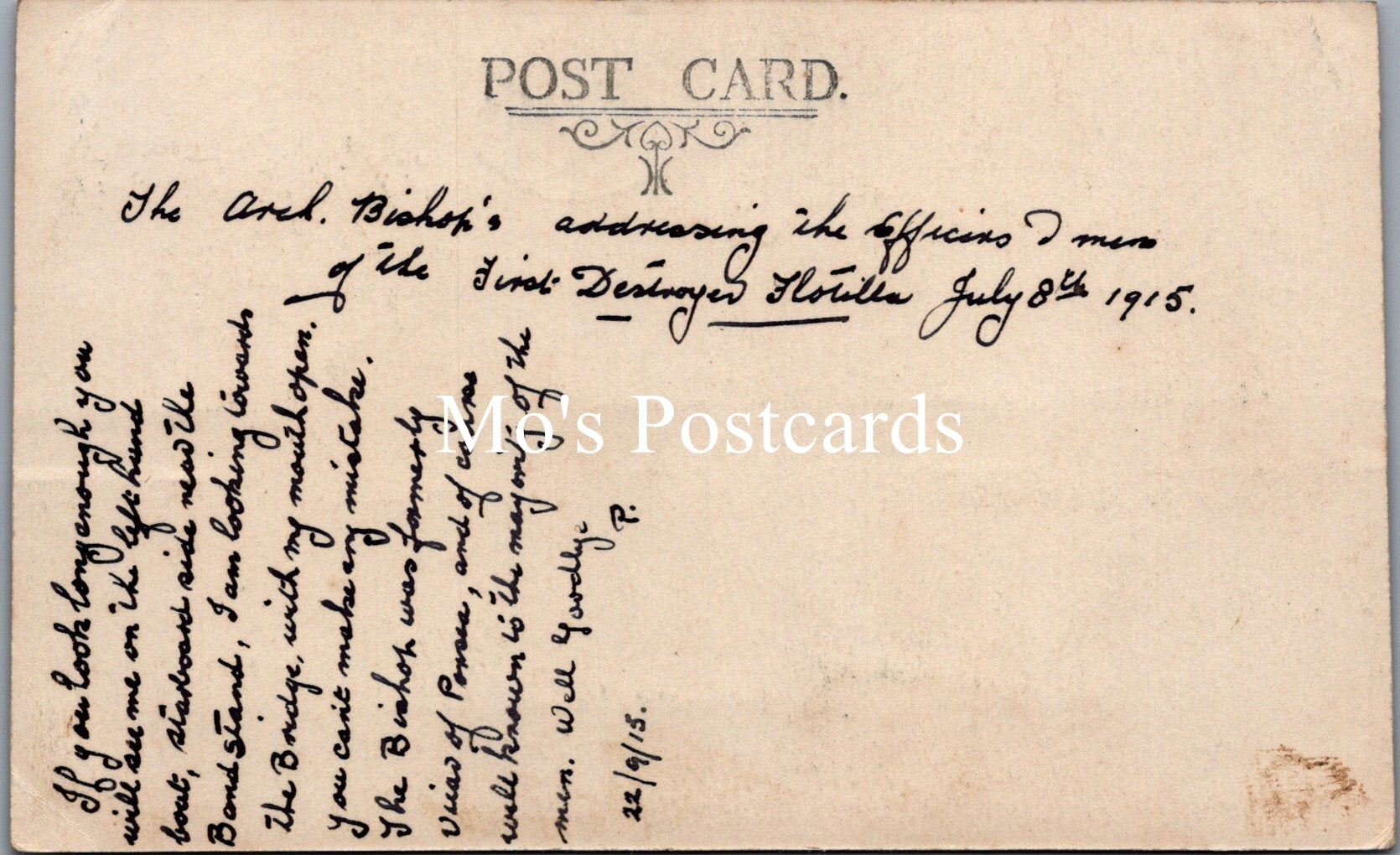 This is a Naval Postcard - Arch Bishop Addressing Sailors, First Destroyer Flotilla July 8th 1915 - SW20241