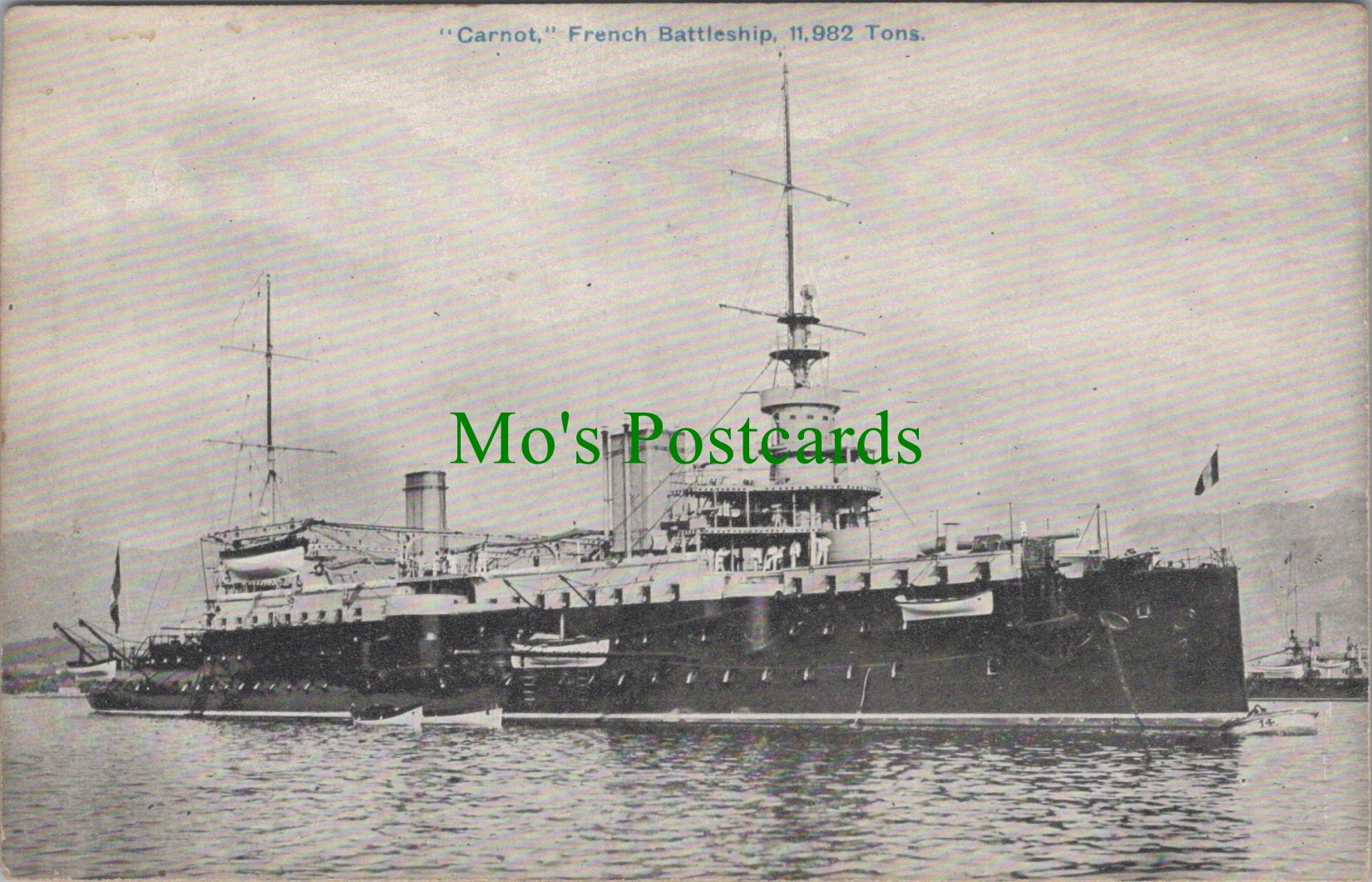 Naval Postcard - "Carnot", French Battleship. This is a fantastic standard sized postcard which would be a great addition to your postcard collection.