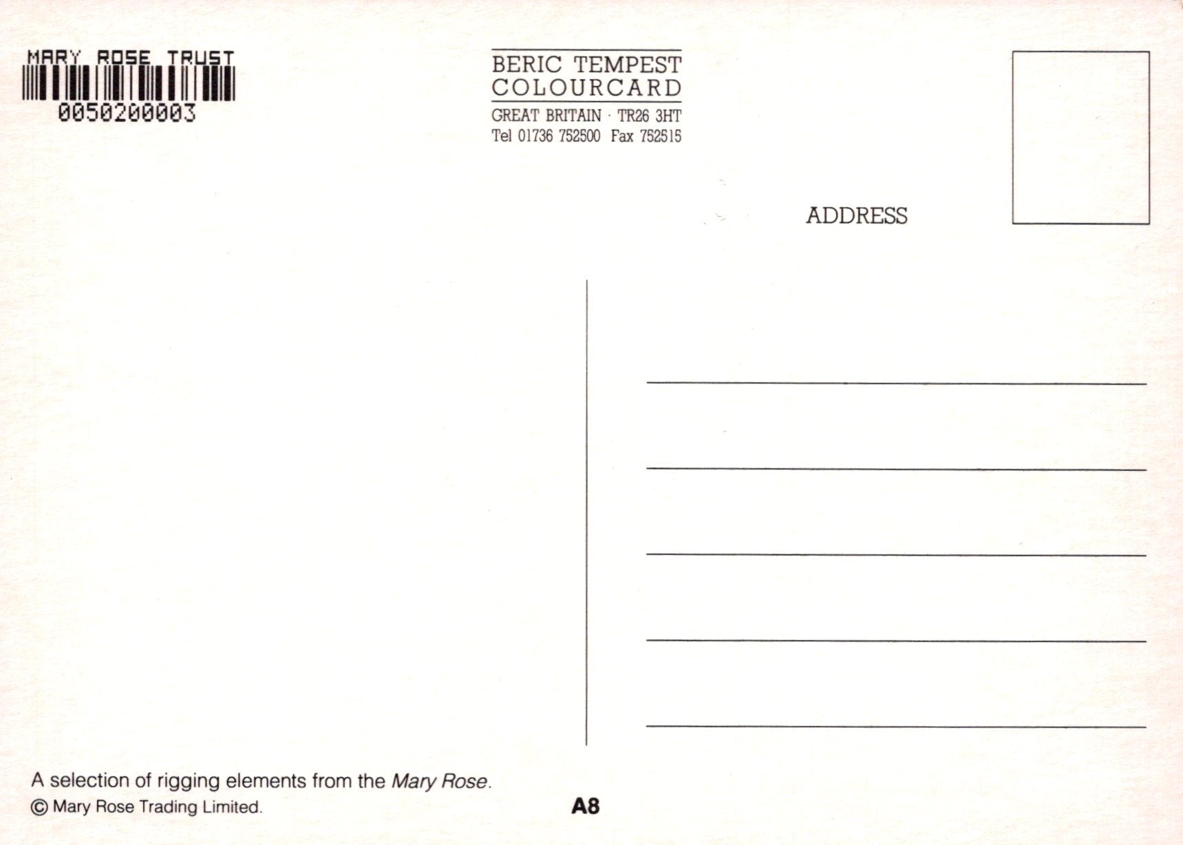Mo's Ref: Naval Postcard - Selection of Rigging Elements From The Mary Rose SW20278