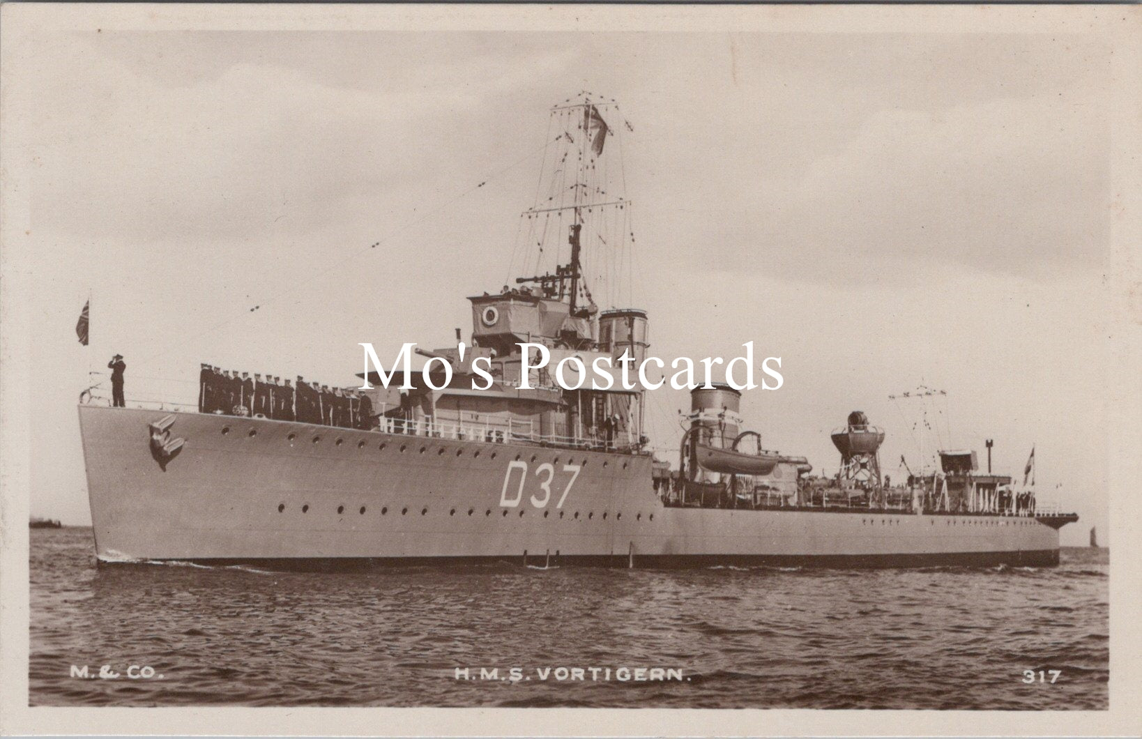 Mo's Ref: Naval Shipping Postcard - H.M.S. Vortigern, V Class Destroyer SW16733