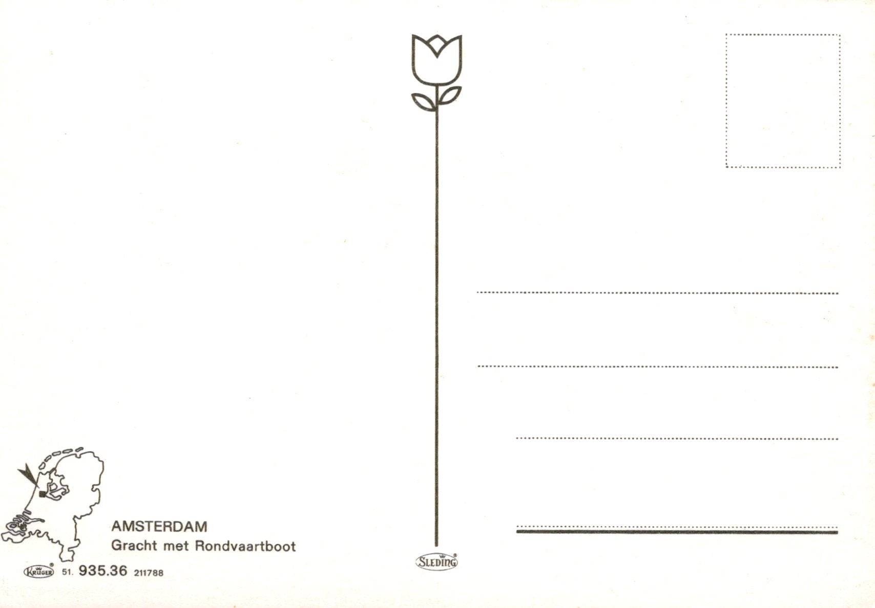 This is a Netherlands Postcard - Amsterdam, Gracht Met Rondvaartboot SW19835