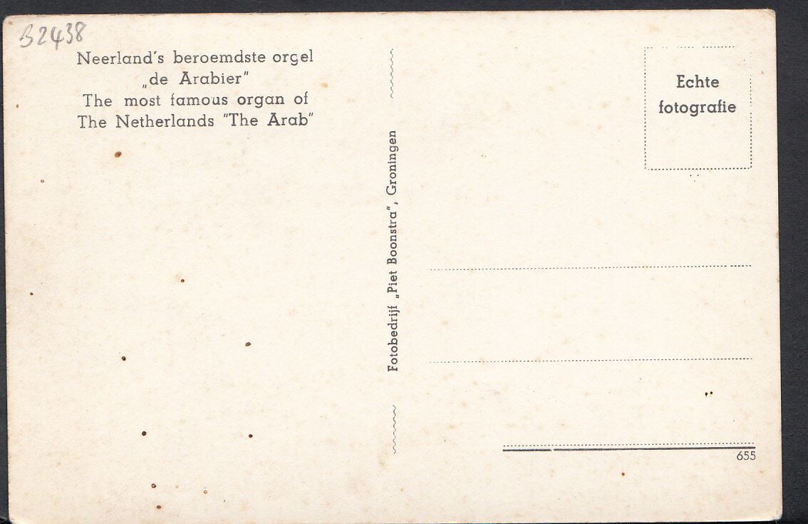 Postcard Description:   Netherlands Postcard - Neerland's Beroemdste Orgel De Arabier - The Most Famous Organ of The Netherlands "The Arab"