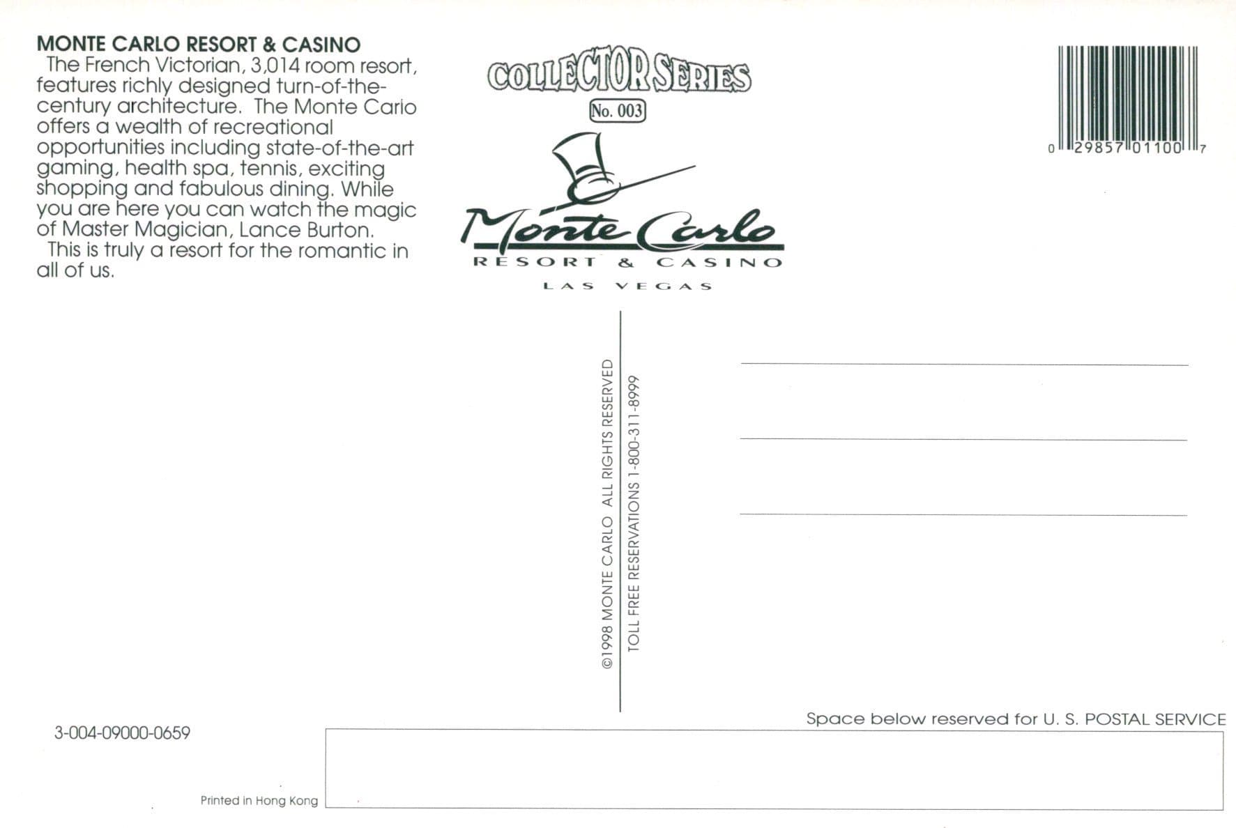 America Postcard - Las Vegas, Monte Carlo Resort & Casino Hotel SW59