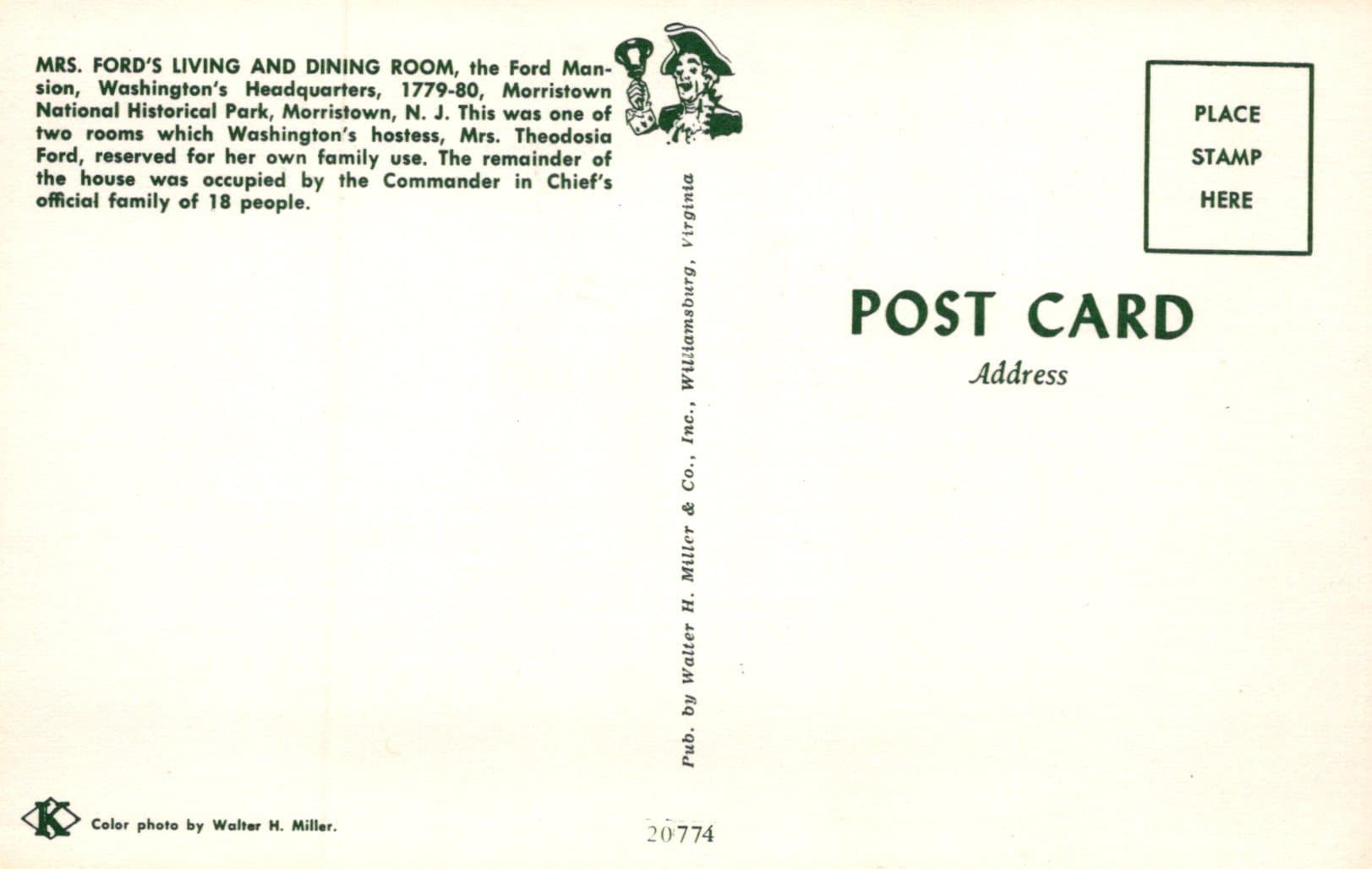 America Postcard - The Ford Mansion, Washington's Headquarters, Morristown, New