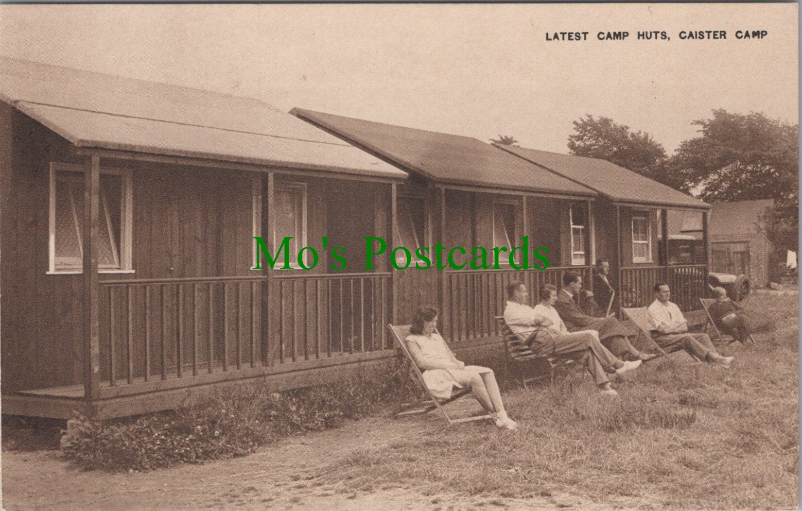 This is a postcard of the Latest Camp Huts, Caister Camp, Norfolk