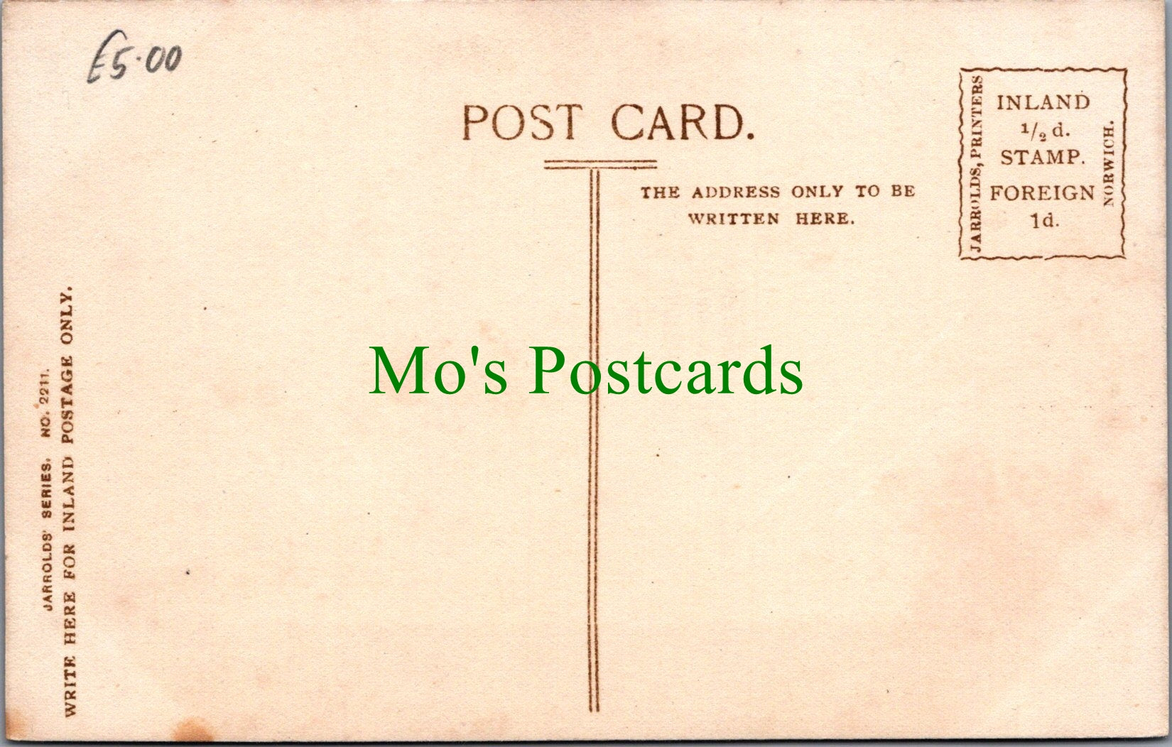 All of our postcards are posted to you inside a plastic sleeve and a board backed envelope which will be marked 'Please do not bend'. The 'Mo's Postcards' watermark does not appear on the actual postcard'.