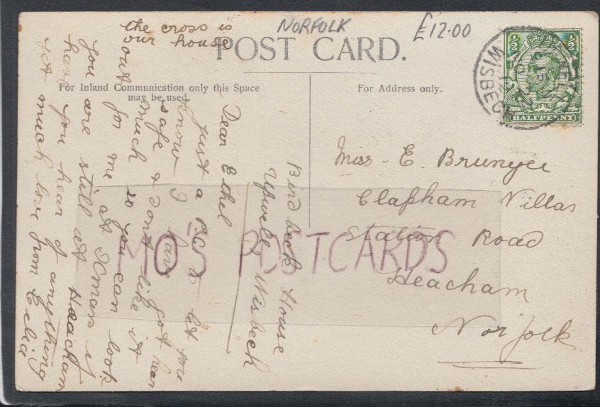 Norfolk Postcard - The Crescent, Upwell, 1912 - Mo’s Postcards