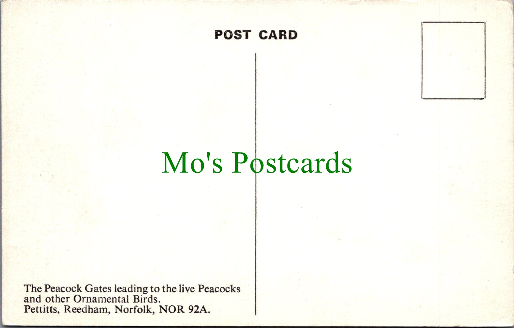This is a postcard of The Peacock Gates, Pettitts, Reedham, Norfolk