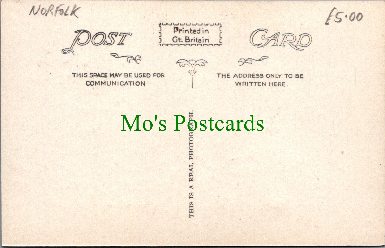 All of our postcards are posted to you inside a plastic sleeve and a board backed envelope which will be marked 'Please do not bend'. The 'Mo's Postcards' watermark does not appear on the actual postcard'.