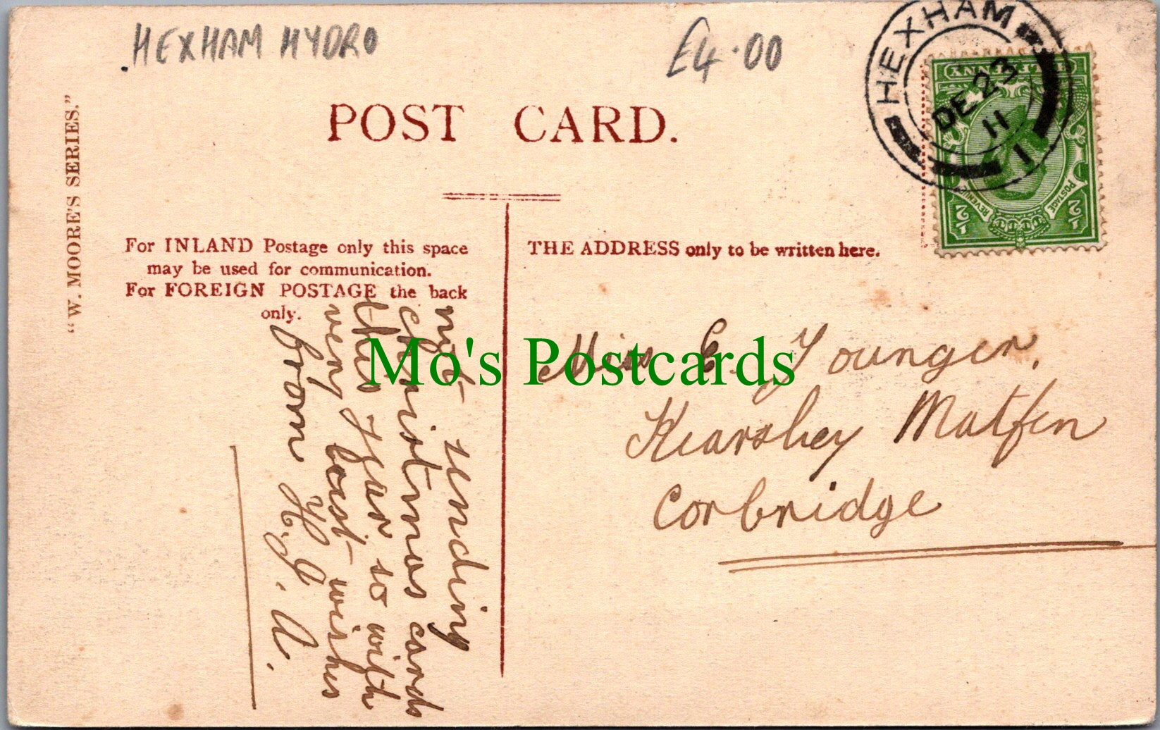 All of our postcards are posted to you inside a plastic sleeve and a board backed envelope which will be marked 'Please do not bend'. The 'Mo's Postcards' watermark does not appear on the actual postcard'.