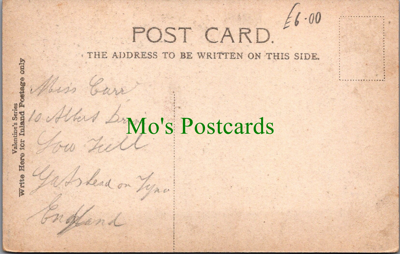 All of our postcards are posted to you inside a plastic sleeve and a board backed envelope which will be marked 'Please do not bend'. The 'Mo's Postcards' watermark does not appear on the actual postcard'.