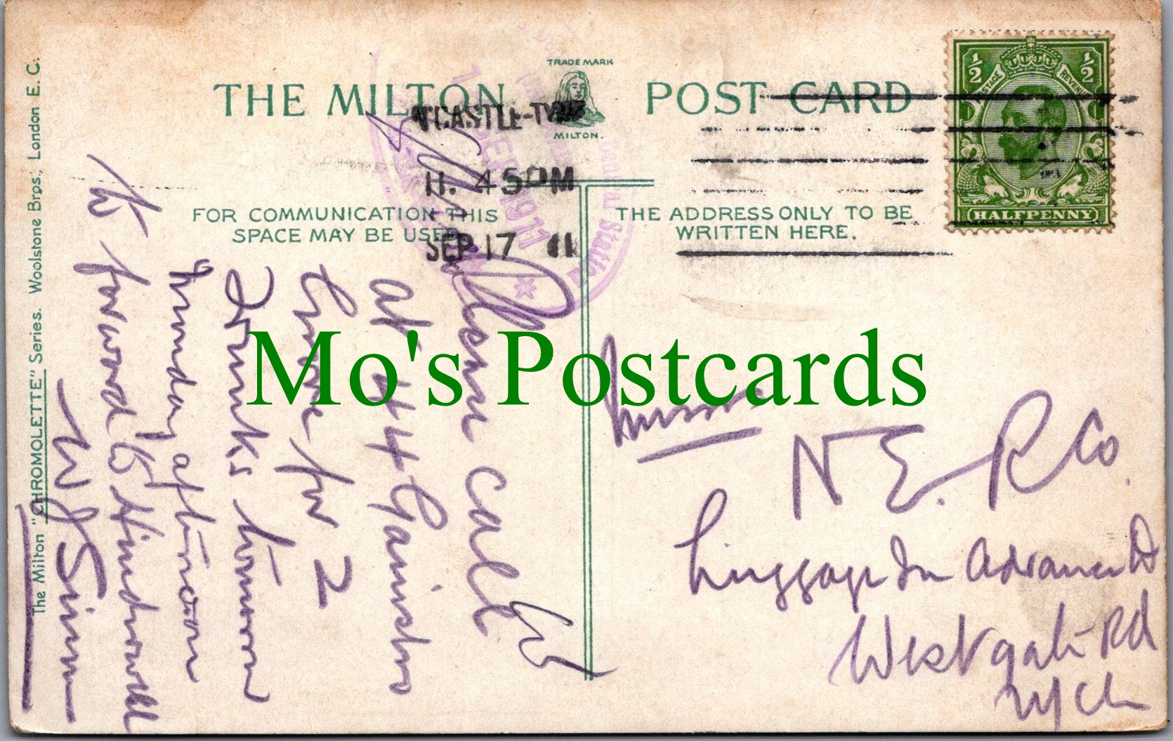 The 'Mo's Postcards' watermark does not appear on the actual postcard'.