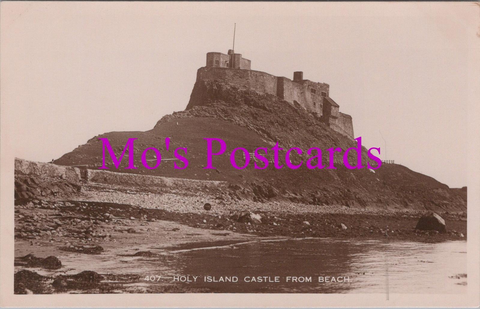 Mo's Ref:  Northumberland Postcard - Holy Island Castle From Beach  HM404