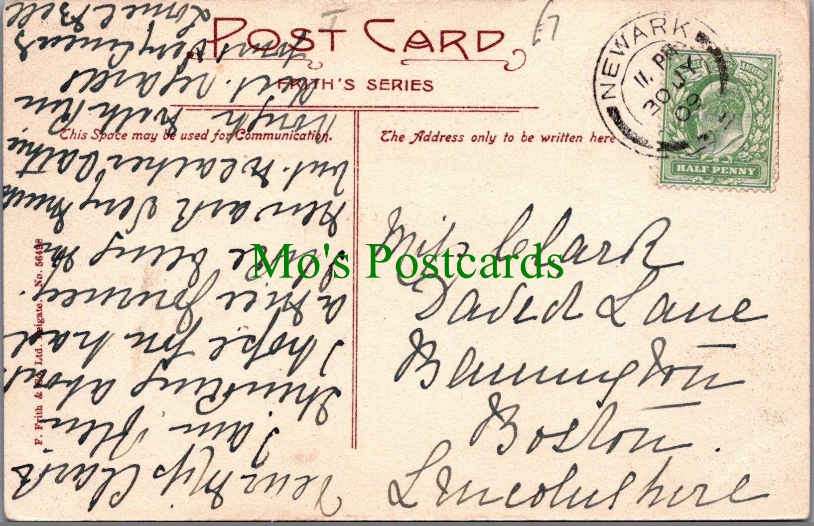 The 'Mo's Postcards' watermark does not appear on the actual postcard'.