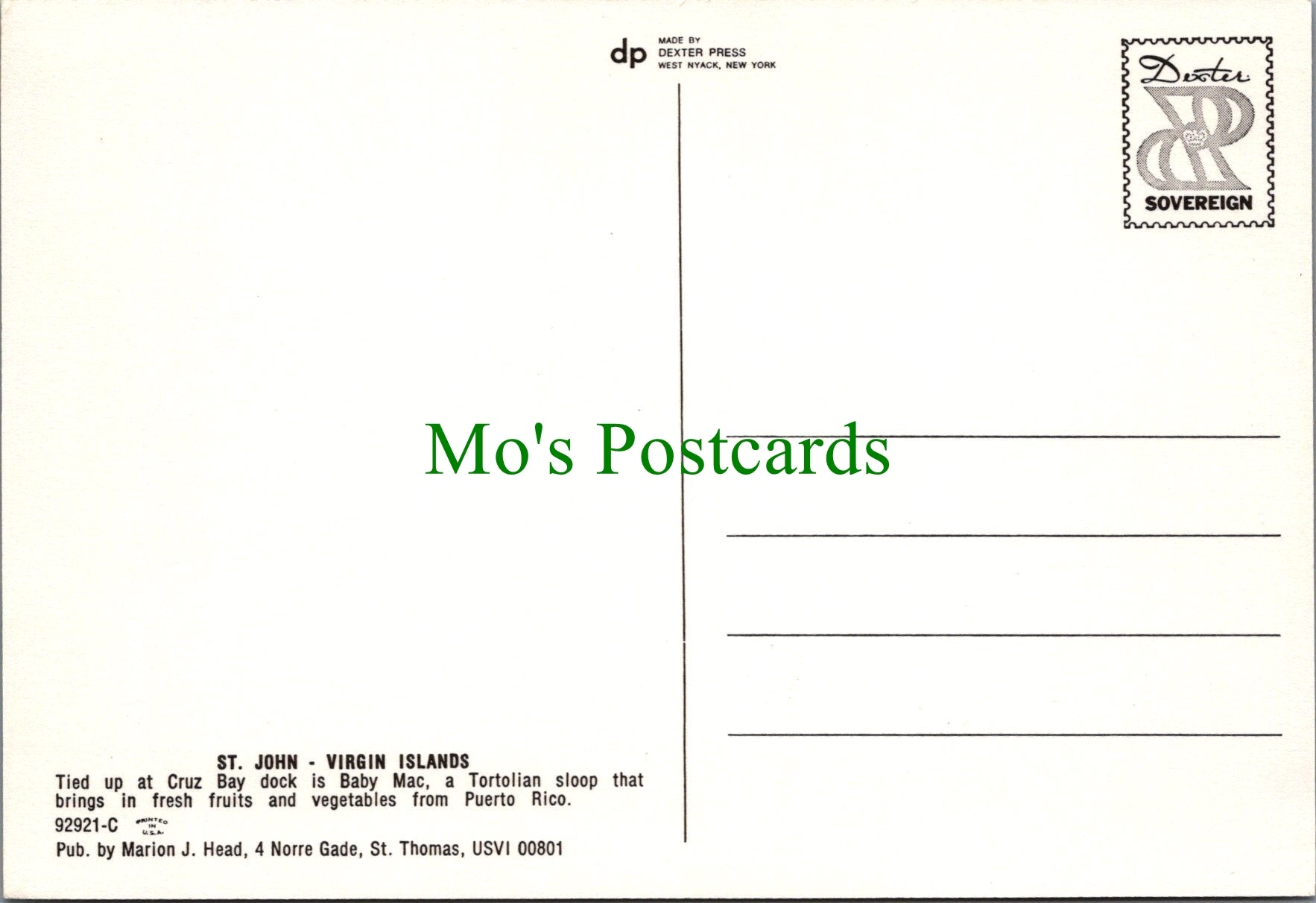 This is a postcard of Cruz Bay Dock, St John, Virgin Islands