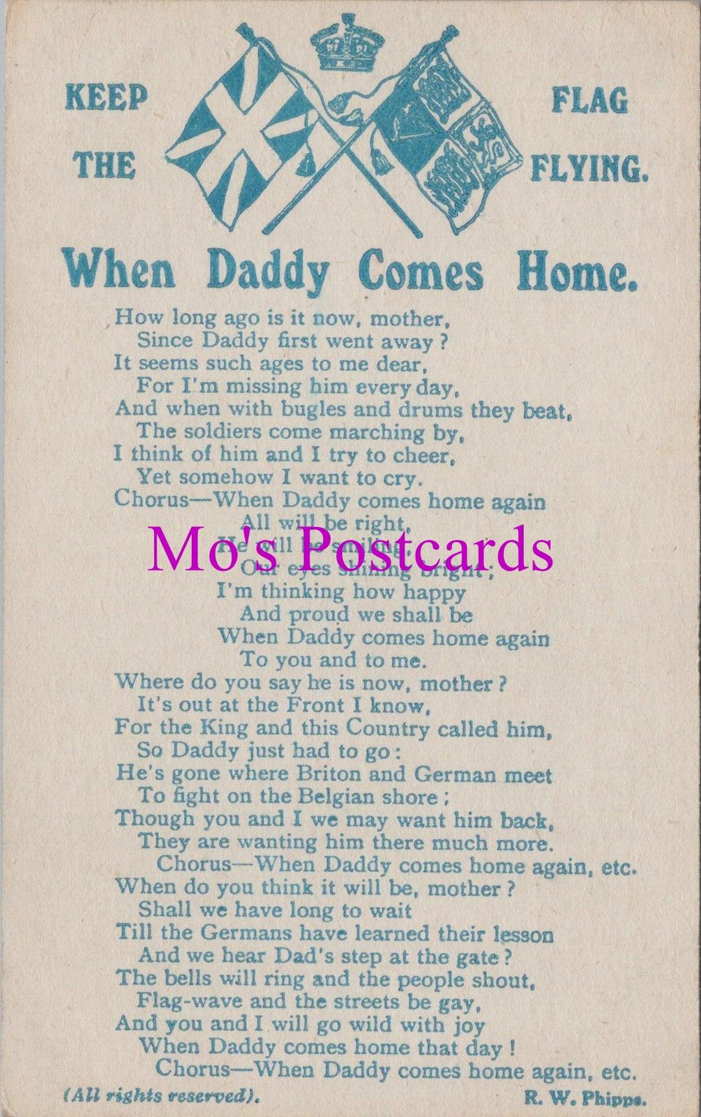 This is a Military Postcard - When Daddy Comes Home, Keep The Flags Flying. R.W.Phipps RS38444