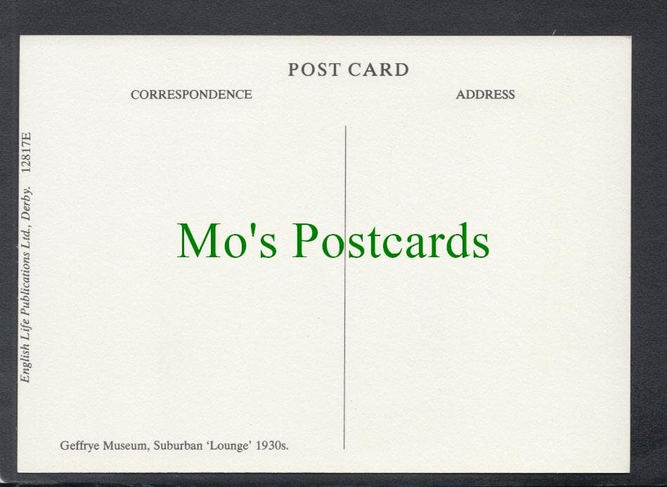 Mo's Postcards offers for sale a postcard of The Geffrye Museum, Suburban Lounge 1930's.