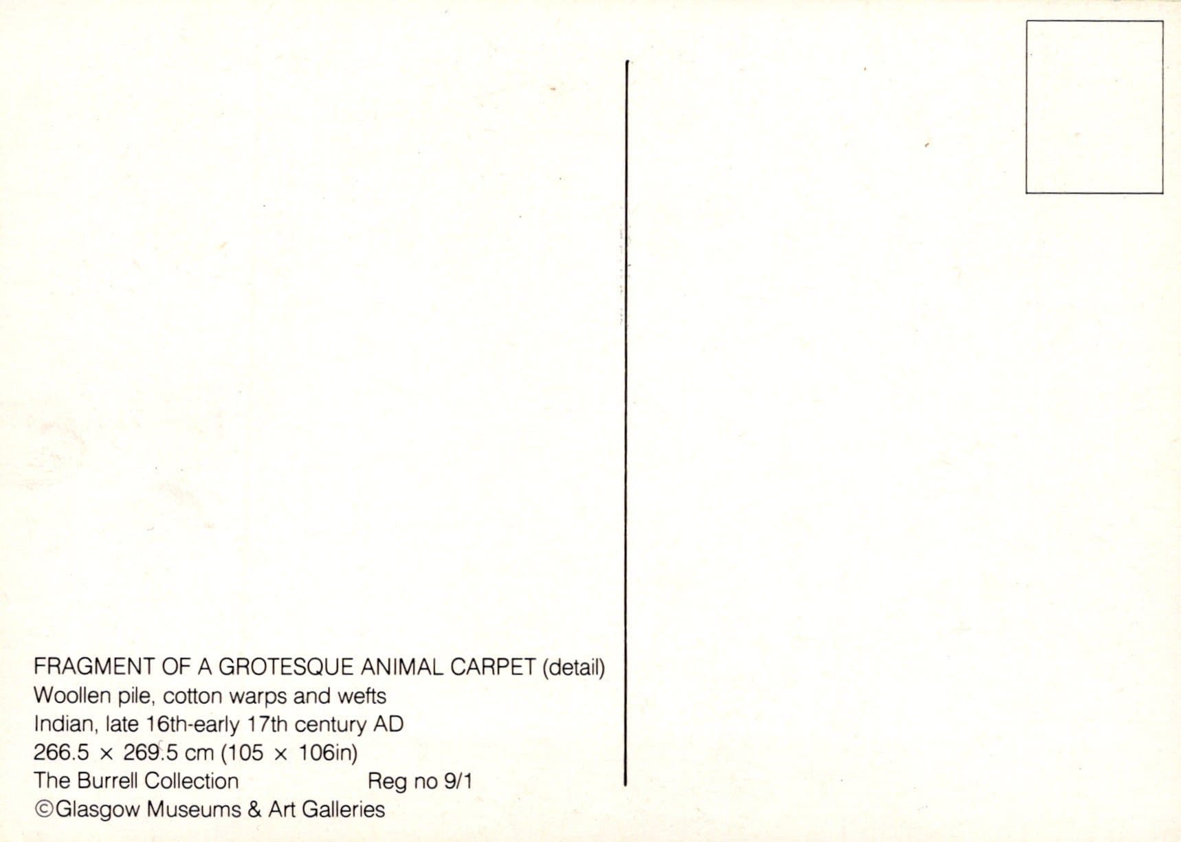 Glasgow Museum Postcard - Fragment of a Grotesque Animal Carpet SW372