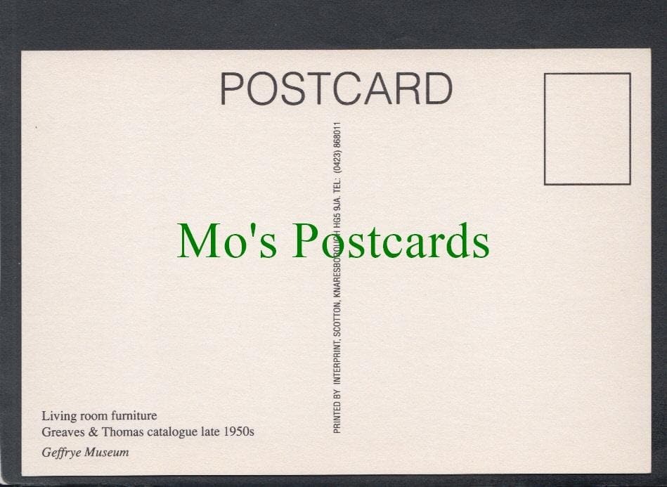 Mo's Postcards offers for sale a postcard of Living Room Furniture, Greaves & Thomas Catalogue Late 1950's - Geffrye Museum.