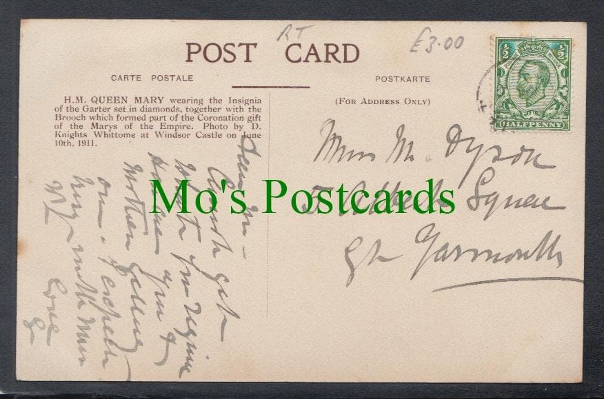 Mo's Postcards offers for sale a Royalty Postcard - H.M.Queen Mary Wearing Gift of The Marys' of The Empire.