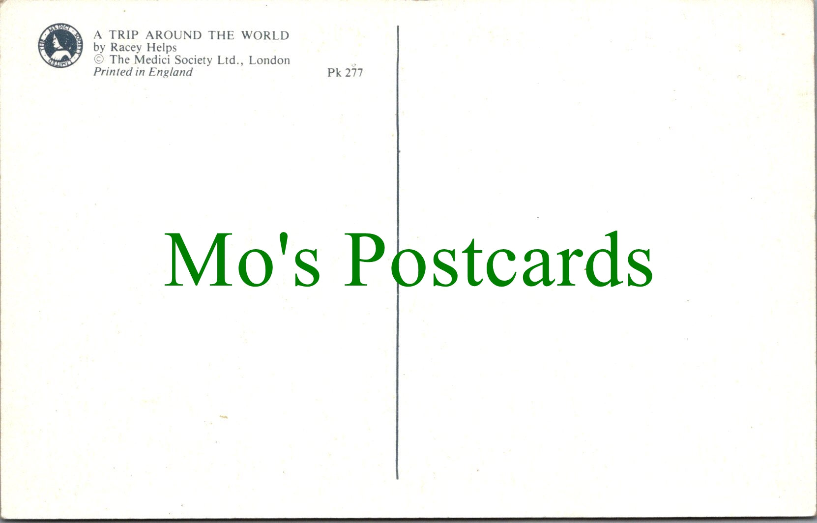 This is a postcard of A Trip Around The World, Artist Tracey Helps