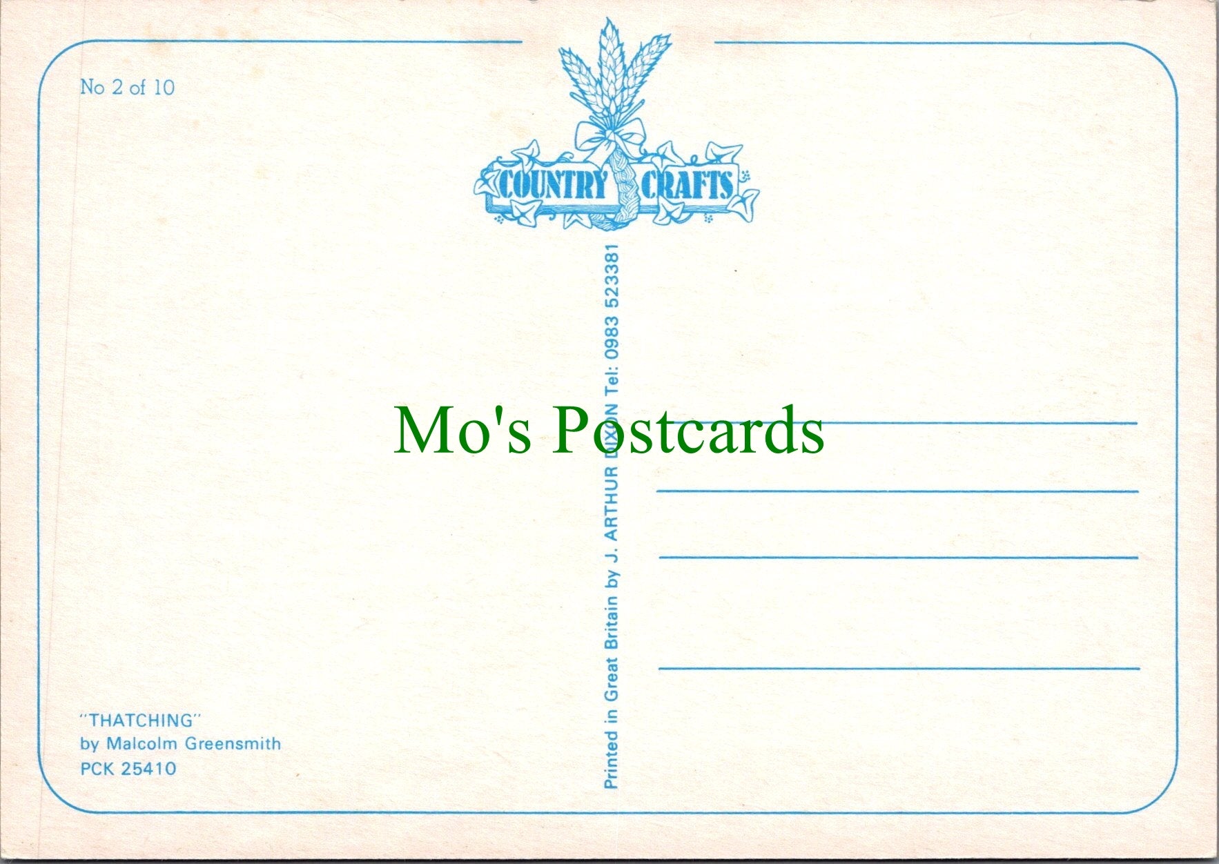 This is a postcard of Country Crafts, "Thatching", Malcolm Greensmith
