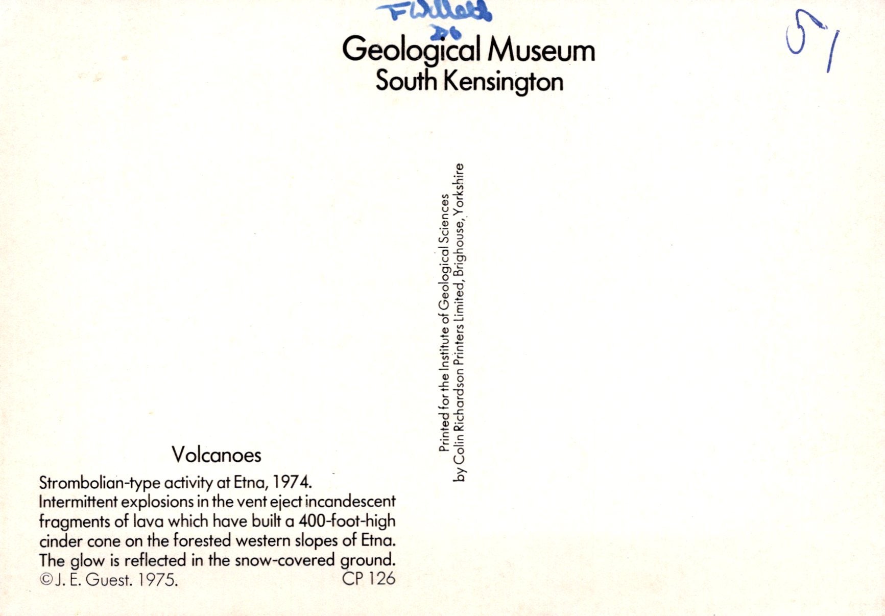 This is a Geology Postcard - Volcanoes, Strombolian Type Activity at Etna SW19814