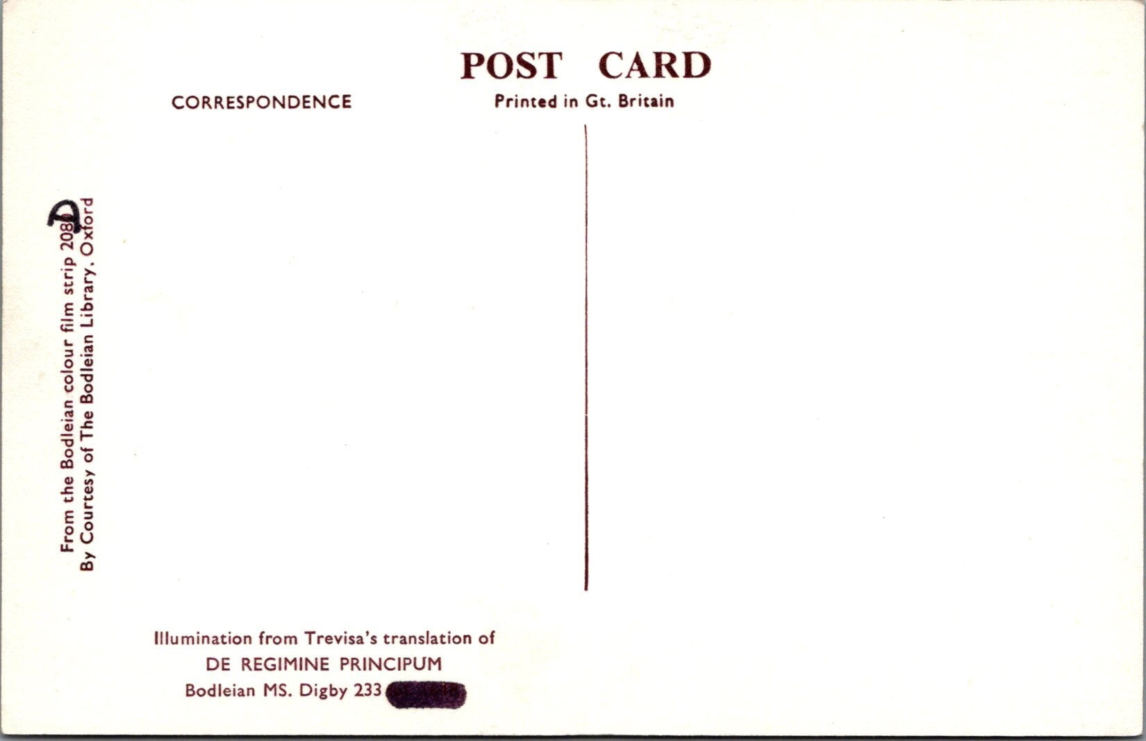 This is a History Postcard - Illumination From Trevisa's Translation De Regimine Principum. Bodleian Library SX433