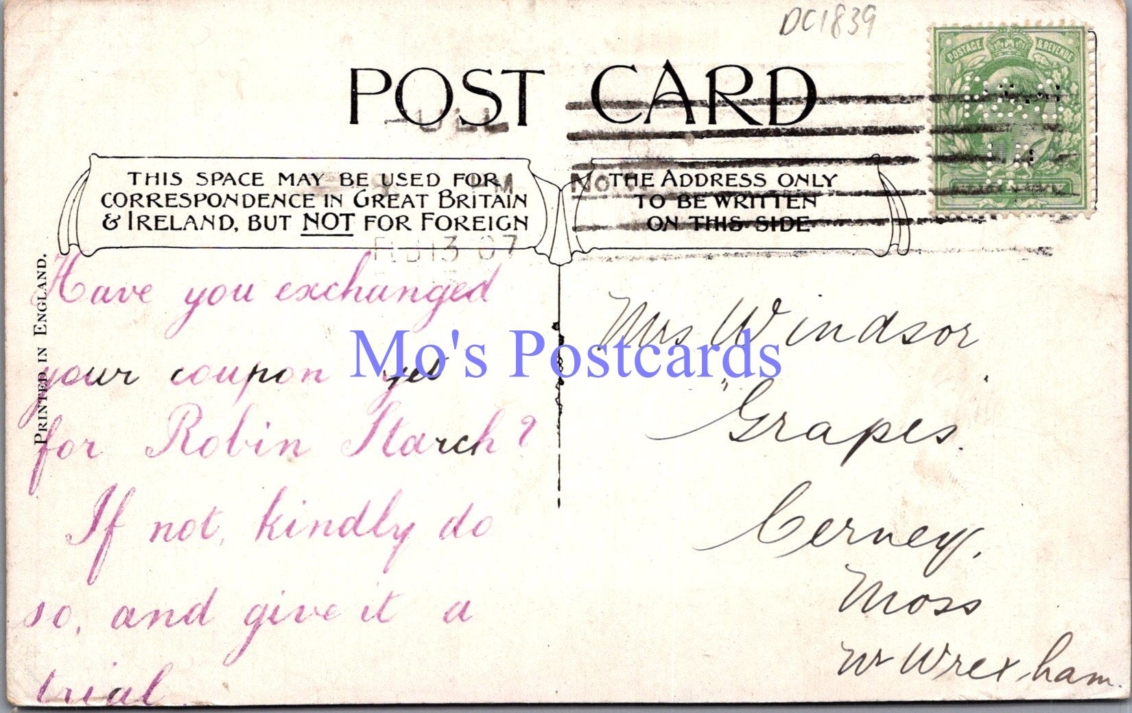 The 'Mo's Postcards' watermark does not appear on the actual postcard'.