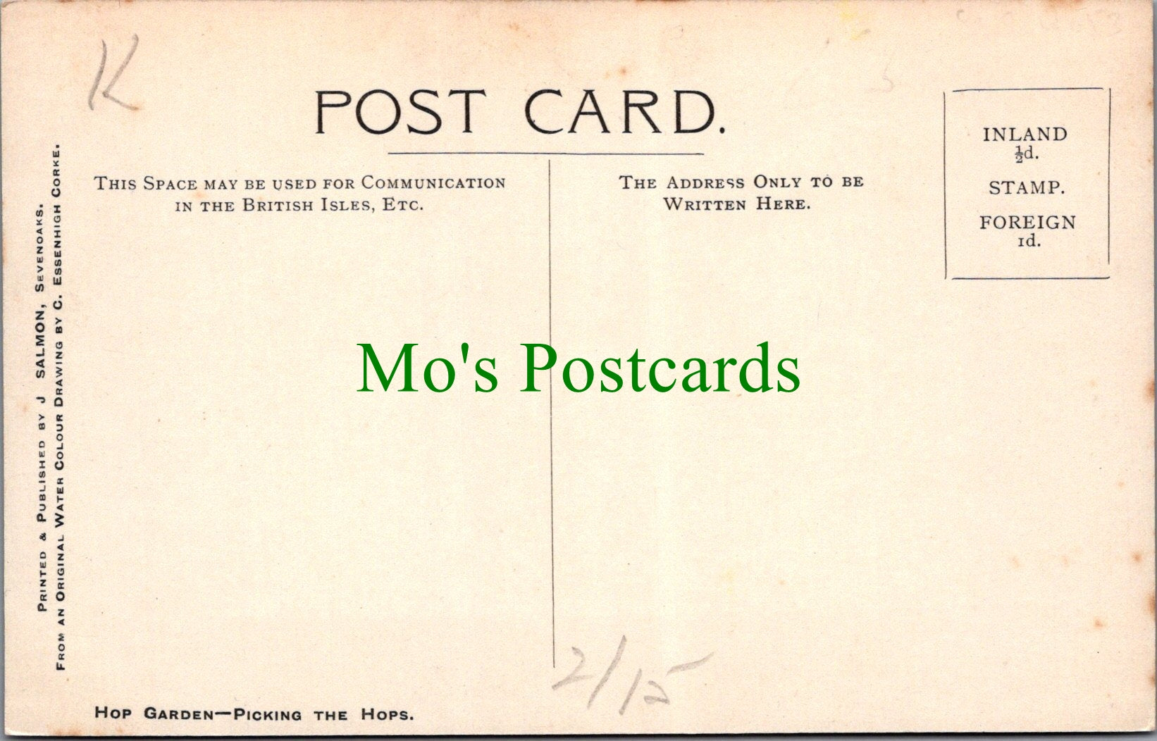 All of our postcards are posted to you inside a plastic sleeve and a board backed envelope which will be marked 'Please do not bend'. The 'Mo's Postcards' watermark does not appear on the actual postcard'.