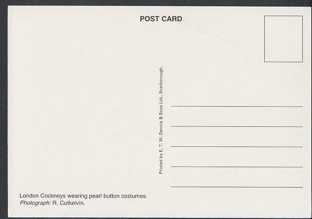 Mo's Ref:  Pearly Pride Postcard - London Cockneys Wearing Pearl Button Costumes RT2367