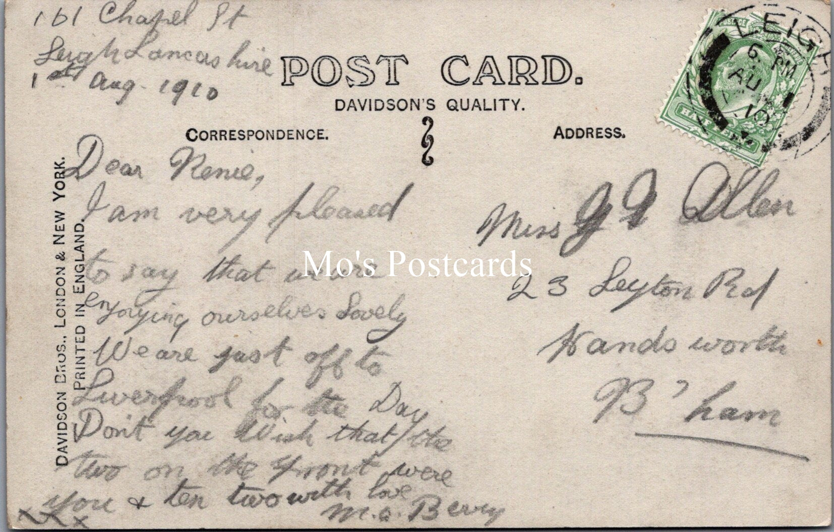 The 'Mo's Postcards' watermark does not appear on the actual postcard'.
