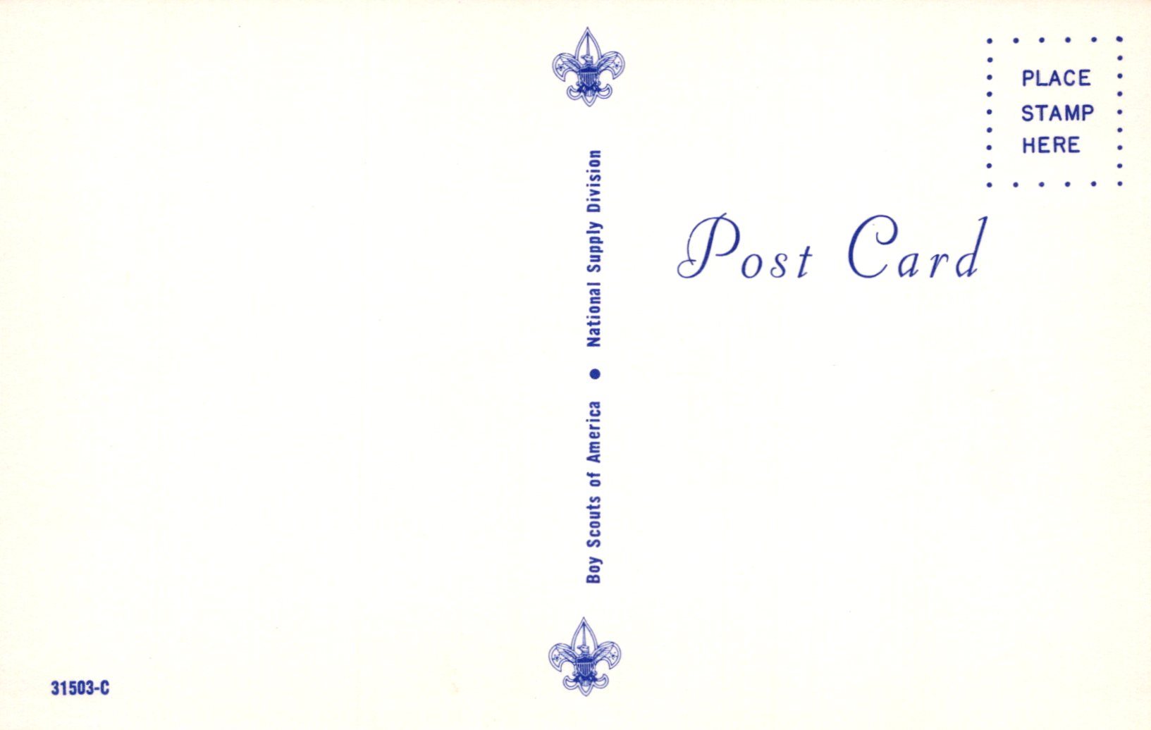 Vintage postcard with Boy Scouts of America logo and text on a white background