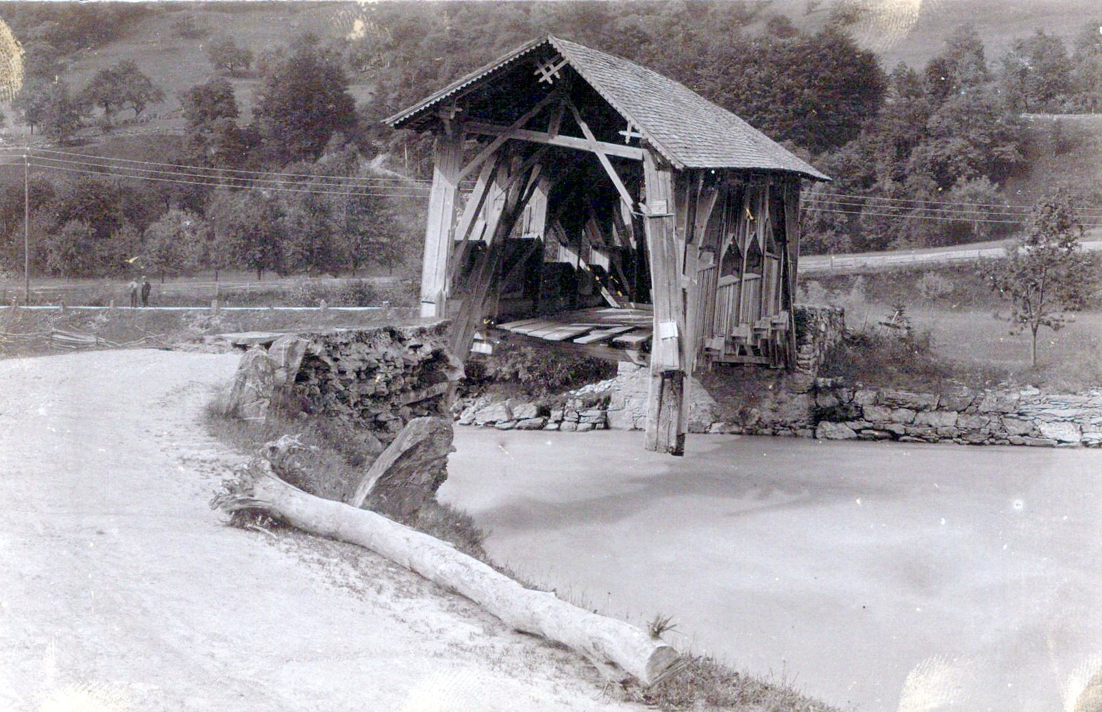 Mo's Ref: Unknown Location Postcard - River and Damaged Bridge SW18379