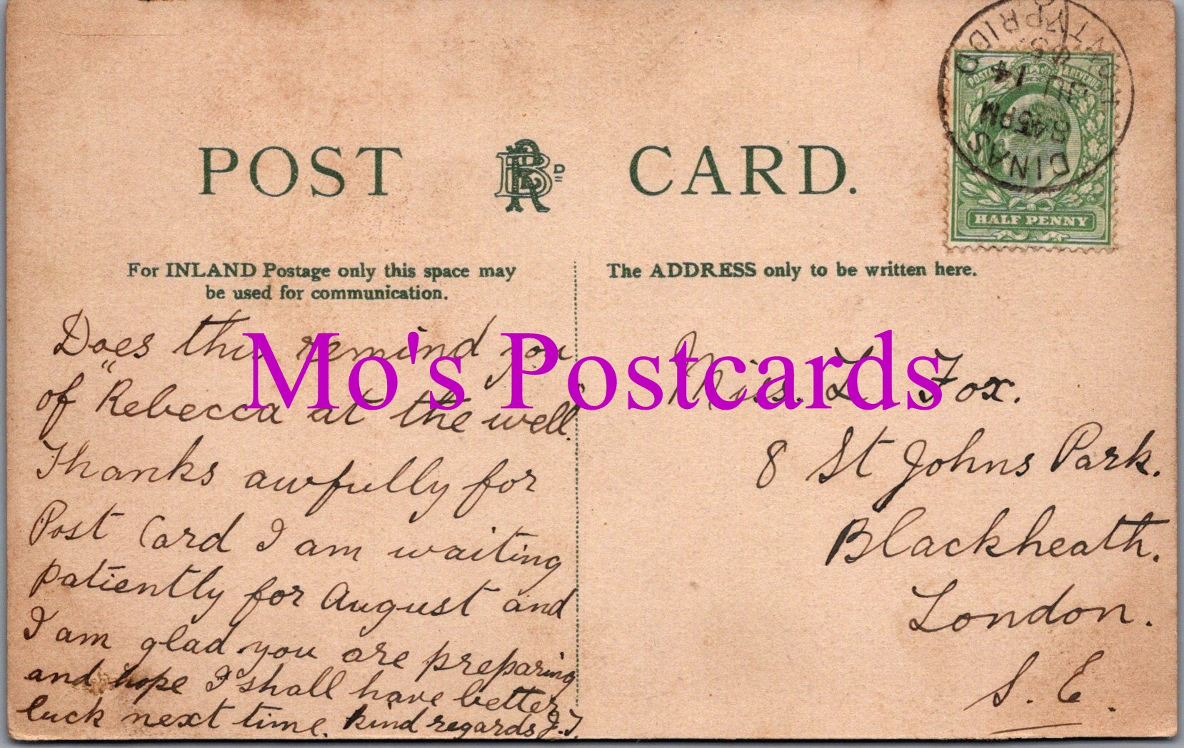The 'Mo's Postcards' watermark does not appear on the actual postcard'.