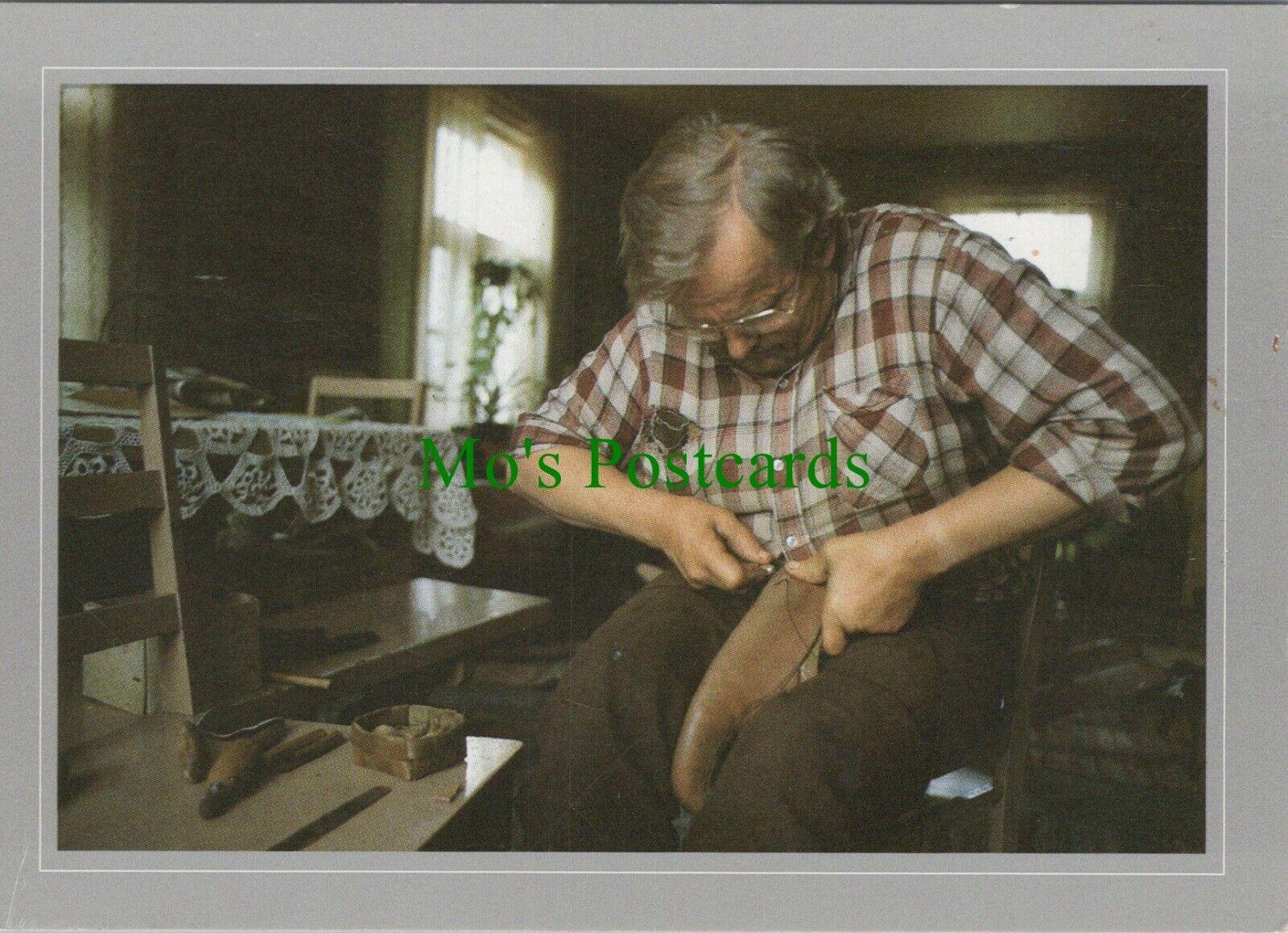 Postcard Description: Work Postcard - Occupations - Cobbler at Work - Shoe Repair - Kotisuutari Kuittuan Kyla, Heinavesi