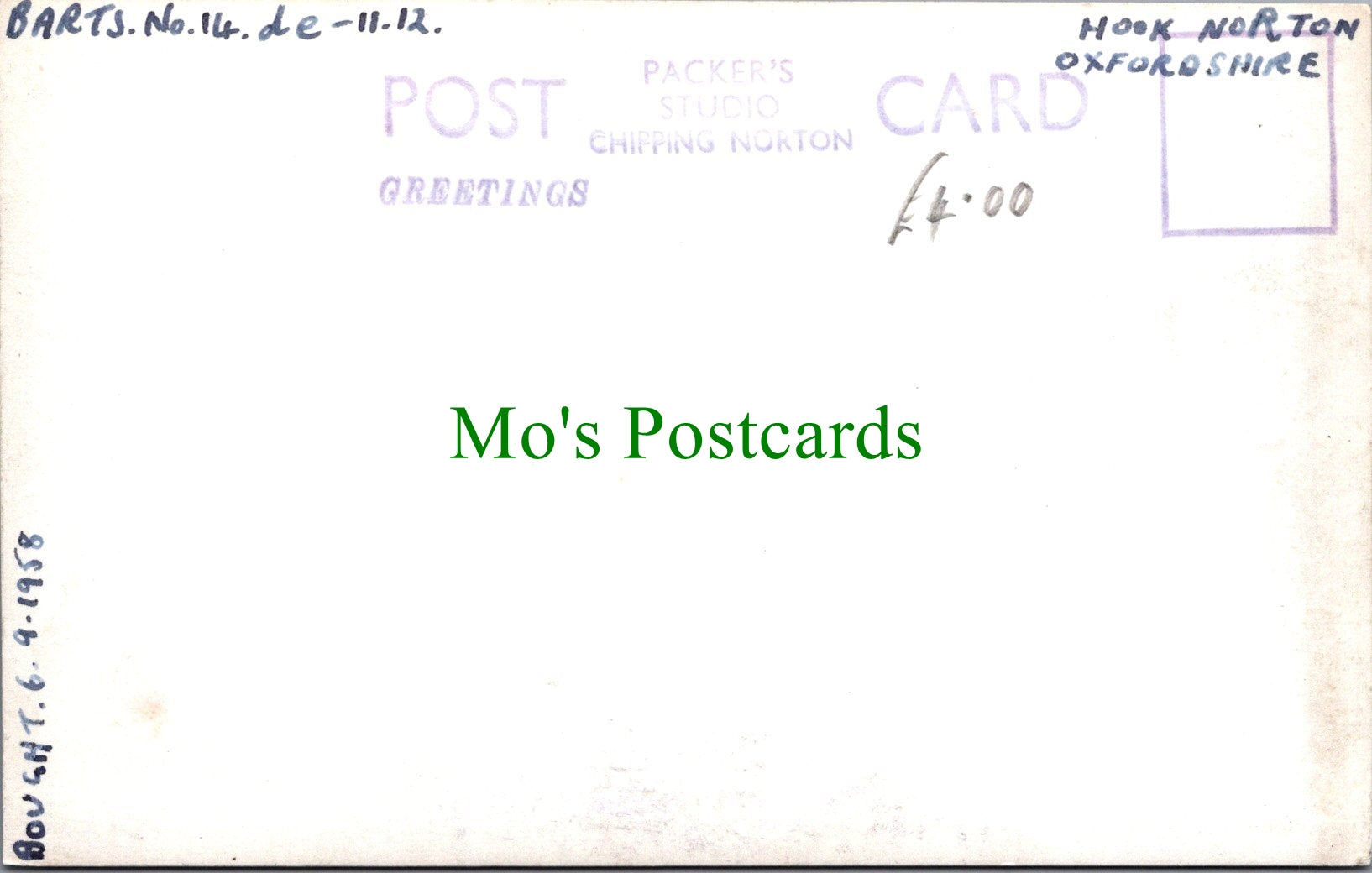 All of our postcards are posted to you inside a plastic sleeve and a board backed envelope which will be marked 'Please do not bend'. The 'Mo's Postcards' watermark does not appear on the actual postcard'.