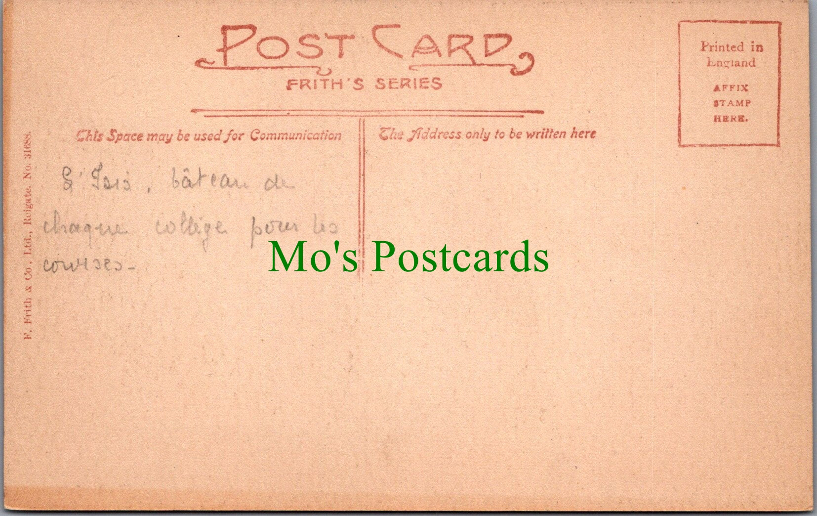 All of our beautiful postcards are posted to you inside a plastic sleeve and a board backed envelope which will be marked 'Please do not bend'. The 'Mo's Postcards' watermark does not appear on the actual postcard'.