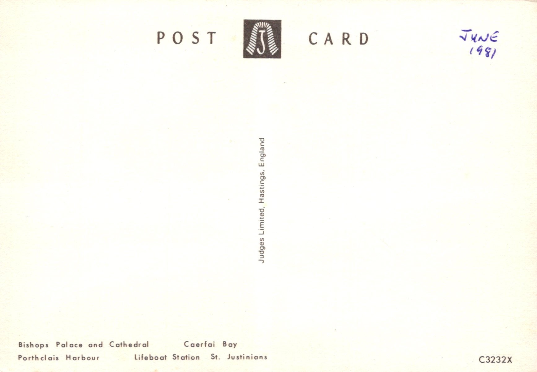 Postcard size: Continental. Partially used. Dated 1981