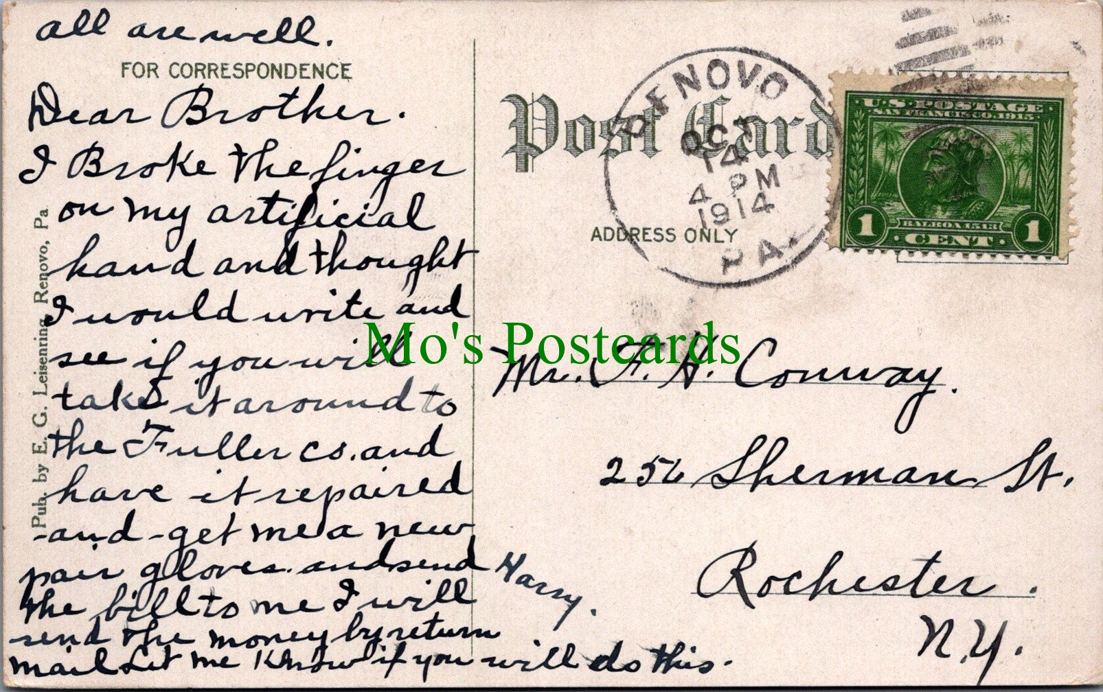 Masonic Temple, Third Street, Renovo, Pennsylvania. This is a fantastic non standard sized postcard which would be a great addition to your postcard collection. Published by E.G.Leisenring, Posted in 1914.