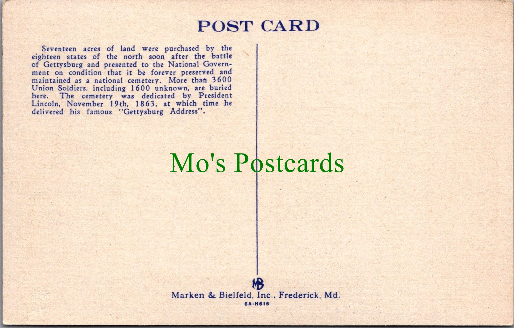 U.S.National Cemetery, Gettysburg. This is a fantastic standard sized postcard which would be a great addition to your postcard collection. Published by Marken & Bielfeld.