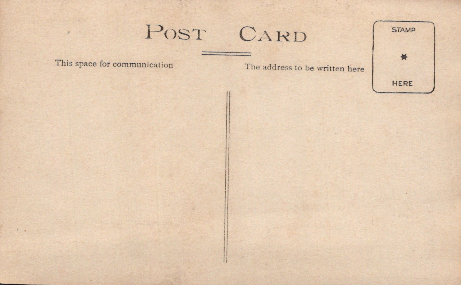 Vintage postcard with text and a stamp area on a beige background