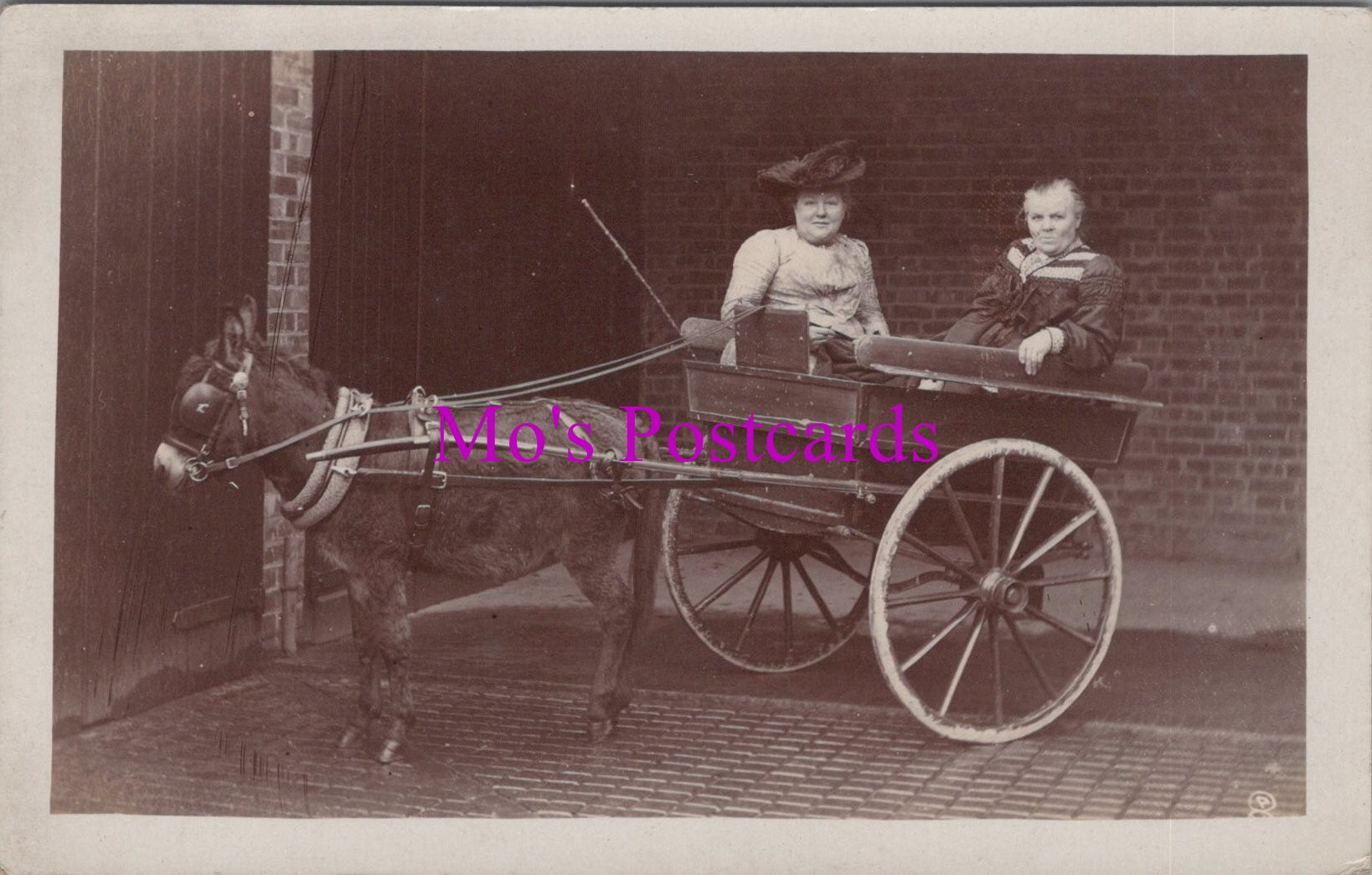 Mo's Ref:  Ancestors Postcard - Two Ladies Riding in a Donkey Cart  SW14988