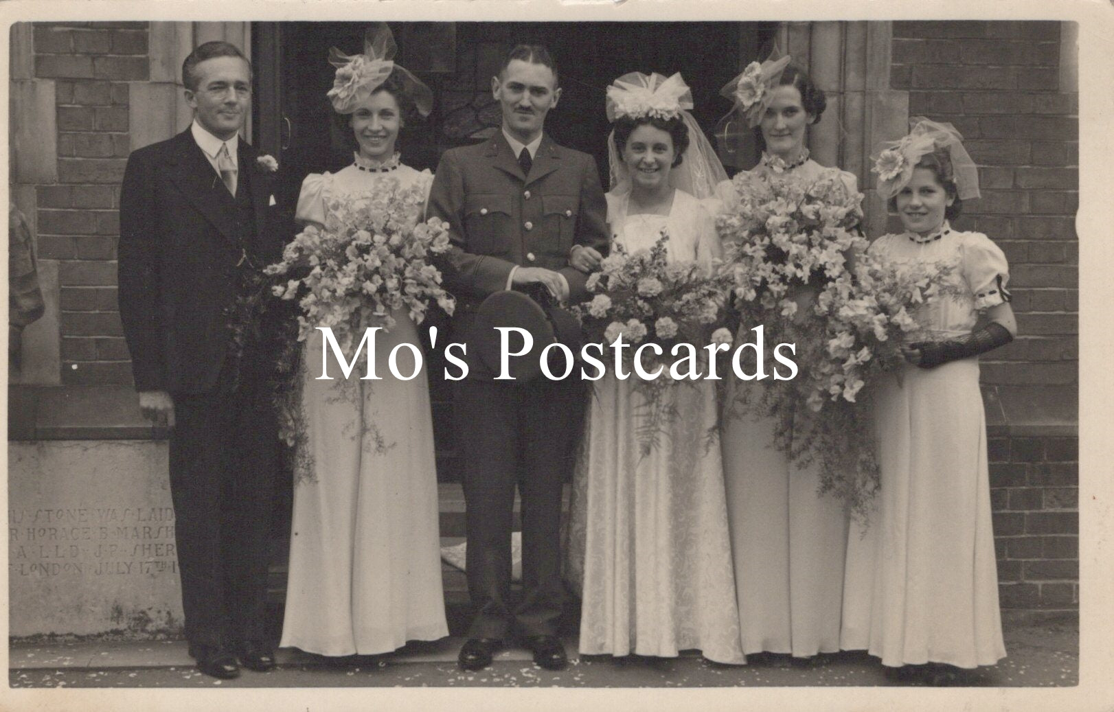 Mo's Ref: Ancestors Postcard - Wedding Party. Groom in Military Uniform SW19719