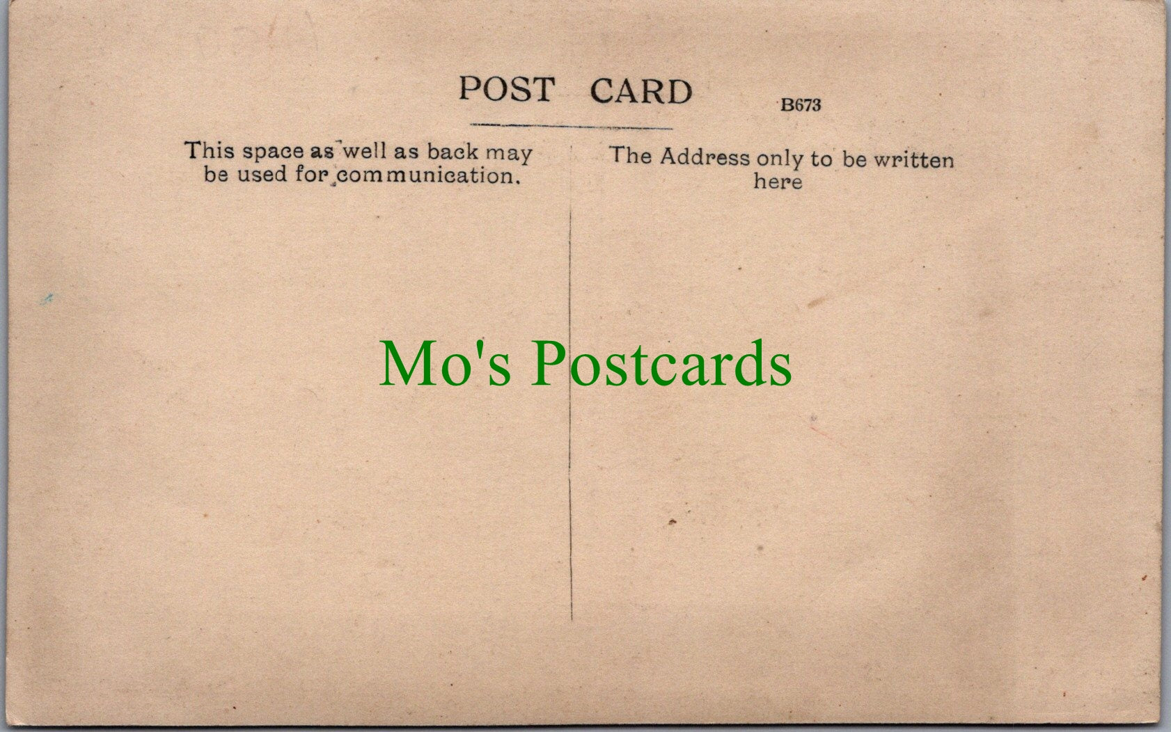 All of our postcards are posted to you inside a plastic sleeve and a board backed envelope which will be marked 'Please do not bend'. The 'Mo's Postcards' watermark does not appear on the actual postcard'.