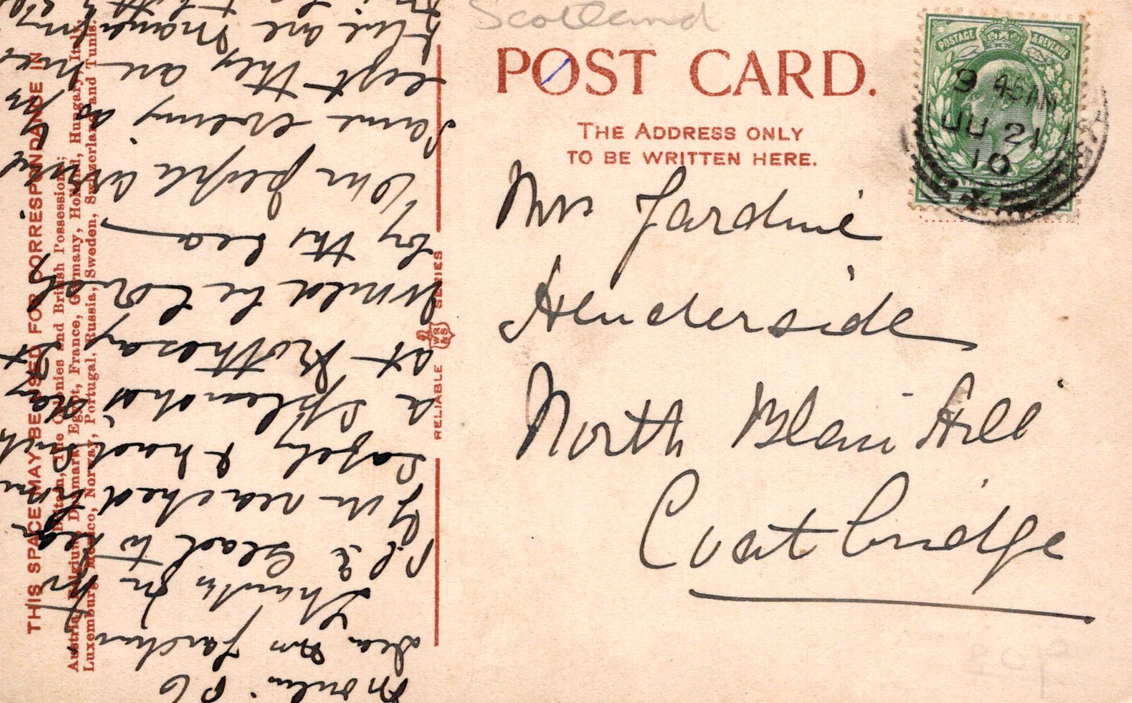 Postcard size:  Standard. Posted in 1910