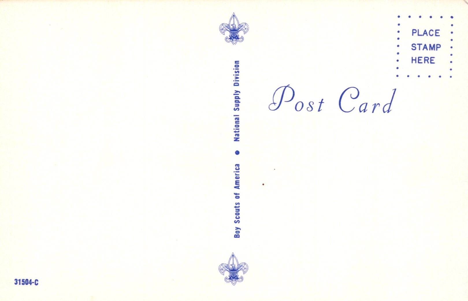 Vintage postcard with Boy Scouts of America logo and text on a white background