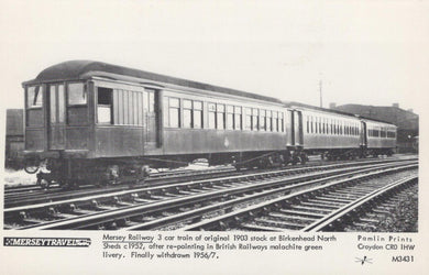 Transport Postcard - Mersey Railway 3 Car Train, Birkenhead North Sheds - XT36